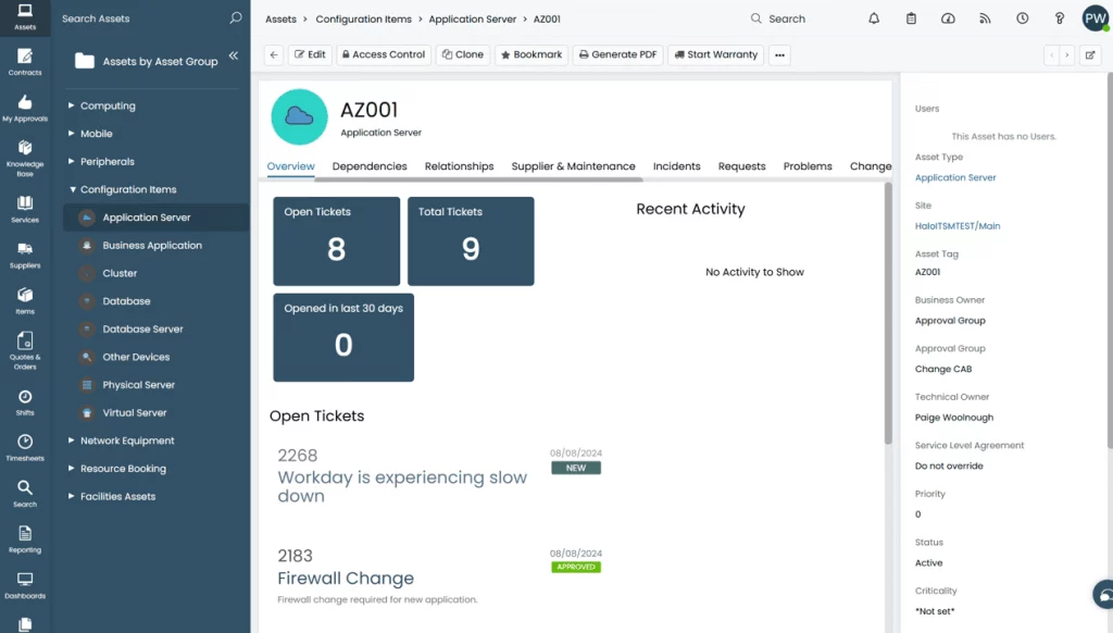 Administre los activos de los usuarios finales y los elementos de configuración en HaloITSM. La CMDB de HaloITSM es una herramienta poderosa para realizar un seguimiento de los elementos de configuración y visualizar las dependencias entre los elementos de configuración. De esta manera, puede registrar incidentes y problemas en los elementos de configuración y concentrarse en las fallas sistemáticas. antes Provocan un incidente importante.